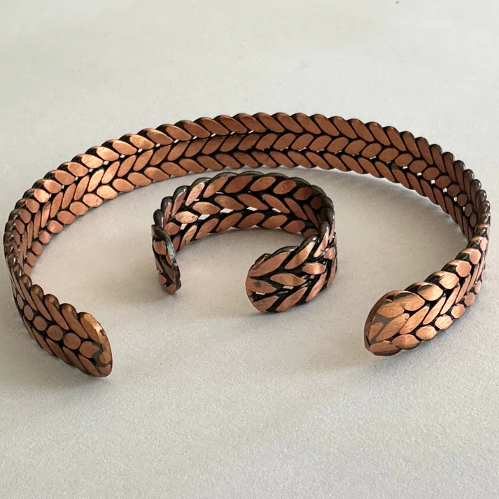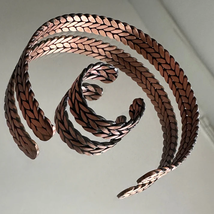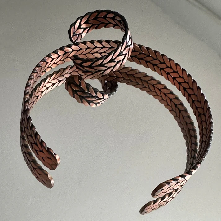 Zamanla teninize uyum sağlayan sıcak bakır dokusu, enerjiyi dengeleyip size eşlik eder.